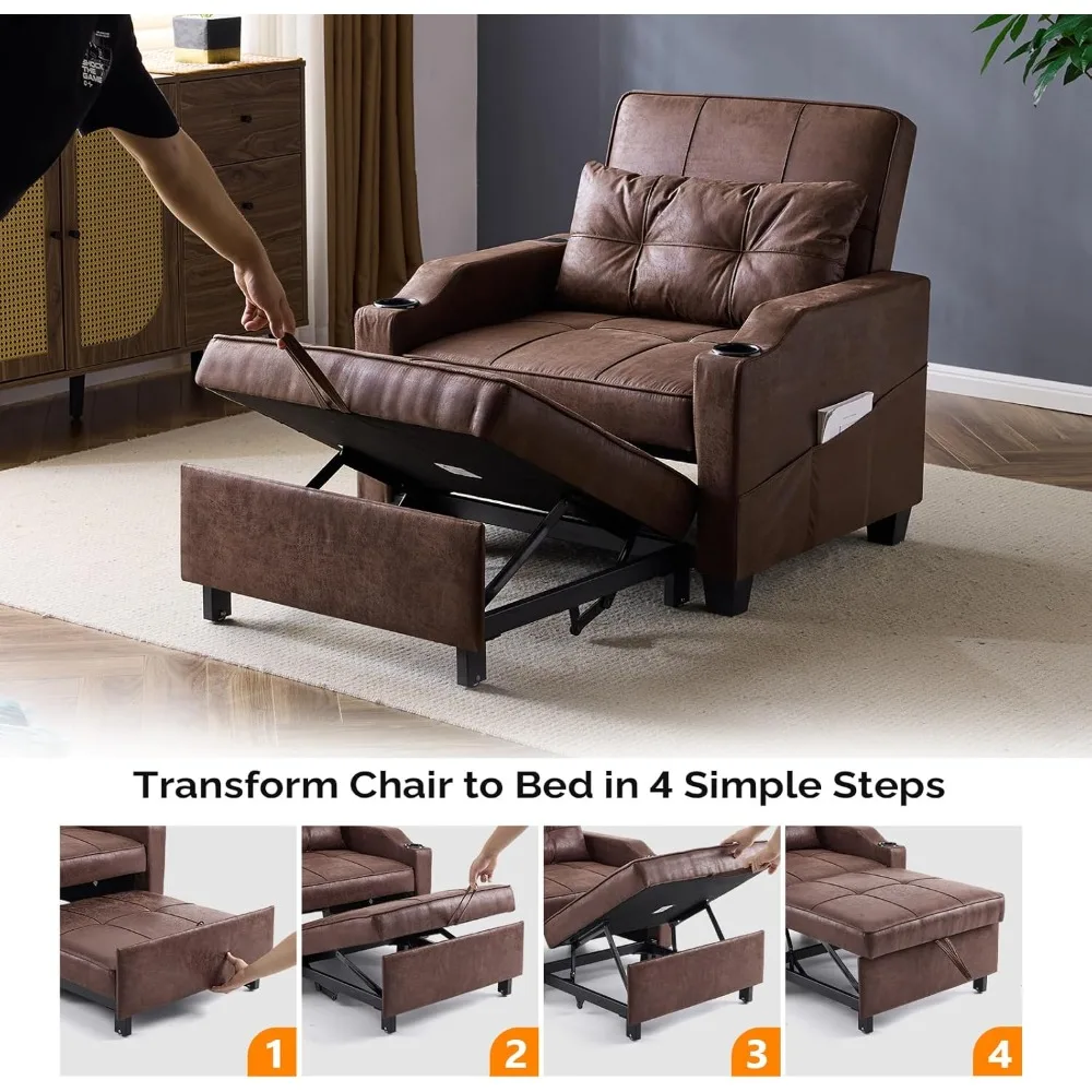 • Comfortable Cushion--Upgrade Padding ensures that both the chair and sleeper functions offer ample padding, providing comfort whether you're sitting or sleeping. 3-in-1 Convertible Sofa Bed--This sleeper chair can be used as a chair, lounger, and pull out couch bed. Making it a versatile piece of furniture that can adapt to different needs.